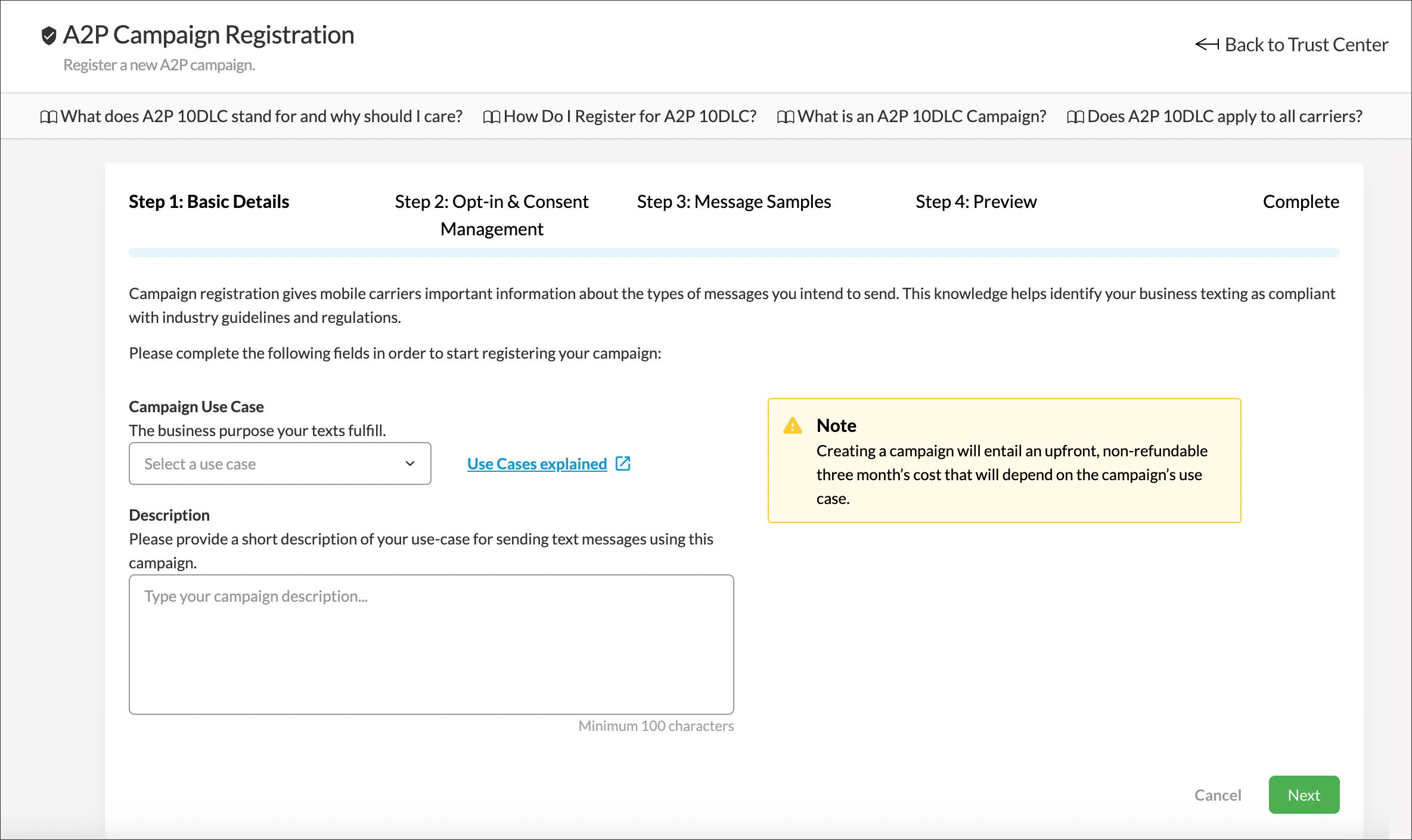 Learn more about what an A2P 10DLC Campaign is ⇢