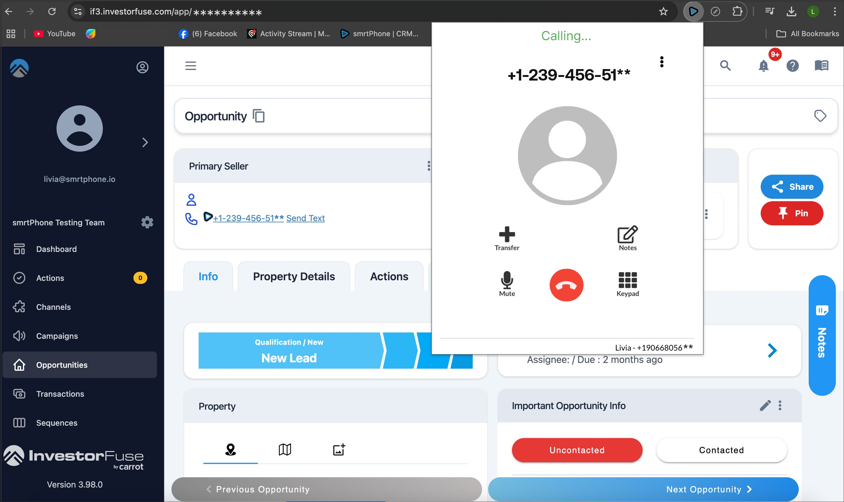 You can also use the option click-to-call: if you click on the number visible under the Opportunity, the Extension will start a new call with that Lead.
