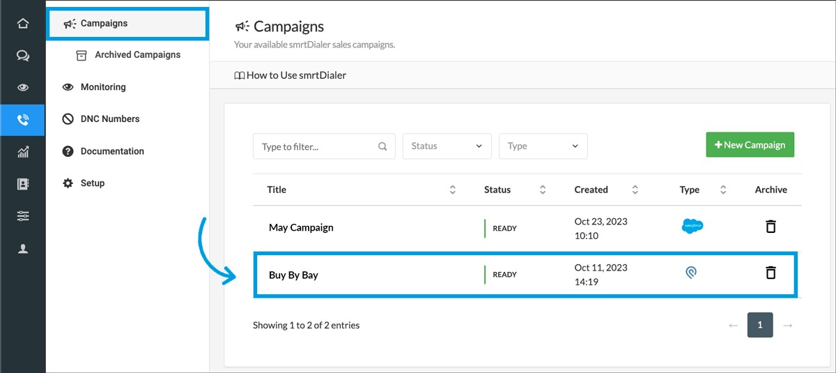 smrtDialer offers the option to keep track of your leads in various ways. Whether you want to see how many times a campaign was run, the time spent in a campaign, or the total number of leads imported or converted, and other useful information about the campaign, you can see them all by accessing your Campaigs' list.
