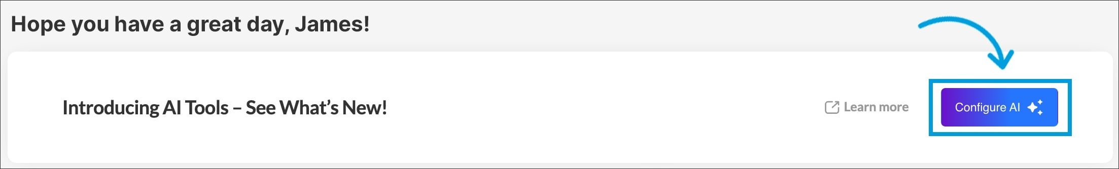 When first landing on the dashboard you see the banner with AI Tools information.