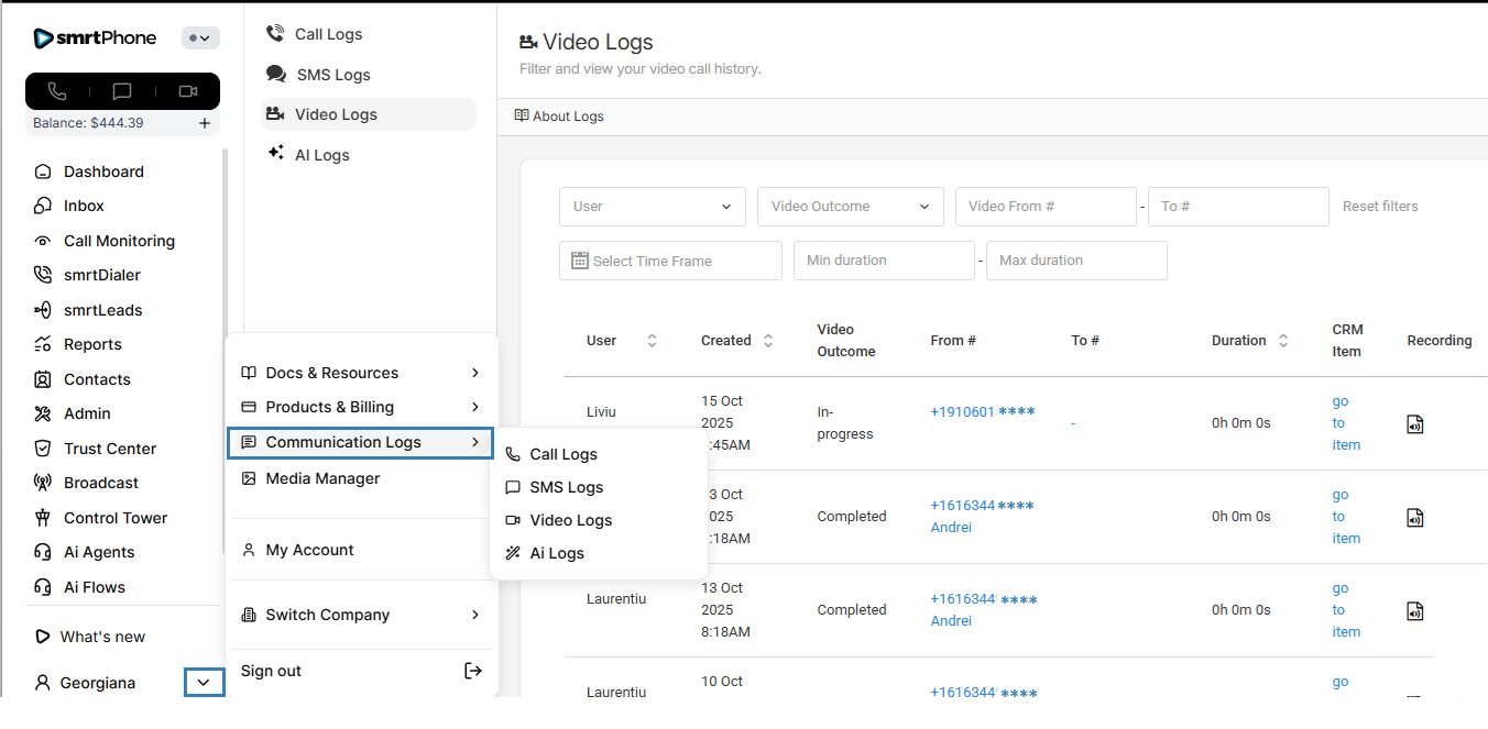 During video calls, you can also use the AI Tools. The functionality is the same for a video call as it is for a regular dialer call. You can also find the recording in the logs.