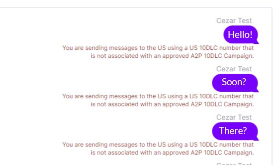 Your message could not be sent because you are sending this message from a suspended U.S. A2P 10DLC Campaign.