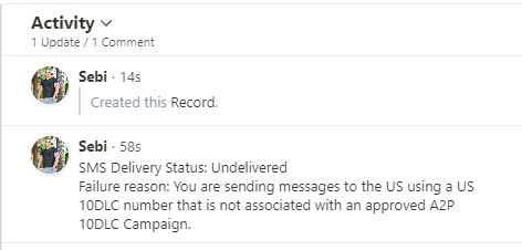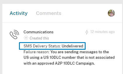 In the Activity and Communications Tab where you can find the SMS/Call Logs, when clicking on the Contact to see activity, you will also find a note about the SMS that was not delivered.