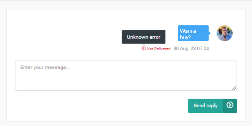 In the Inbox, you can see that the message was not delivered, and a pop-up specifies the error.
