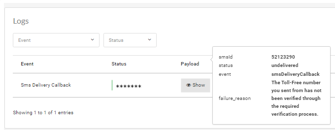 In Webhook Logs you can see the status, the Event triggered, and the cause of the failure.