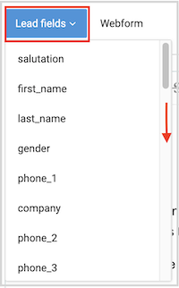 Click on the blue Lead Fields button to expand the list of options. Scroll to see more options.