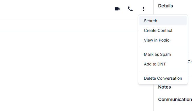Just type in the Search bar the details you're looking for and hit Enter/the search button. In V2, you have the option to search within the conversation or in the entire inbox.