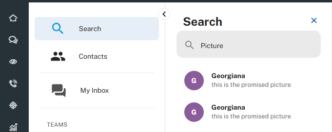 This search will action within the entire Inbox, for both individual and Teams Inbox, taking you to the conversation(s) where your answer lives.