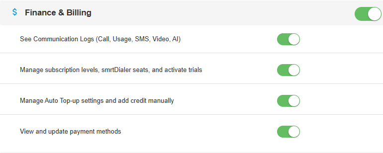 Finance and Billing Permissions