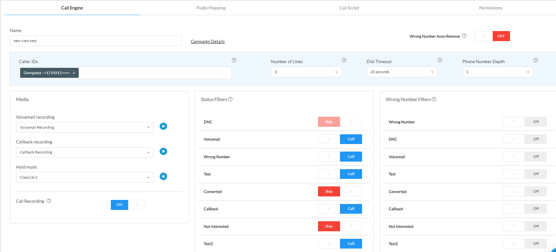 Furthermore, you also have the option to enable Wrong Number Auto-Remove, which will remove the number from your Leads inside Podio.