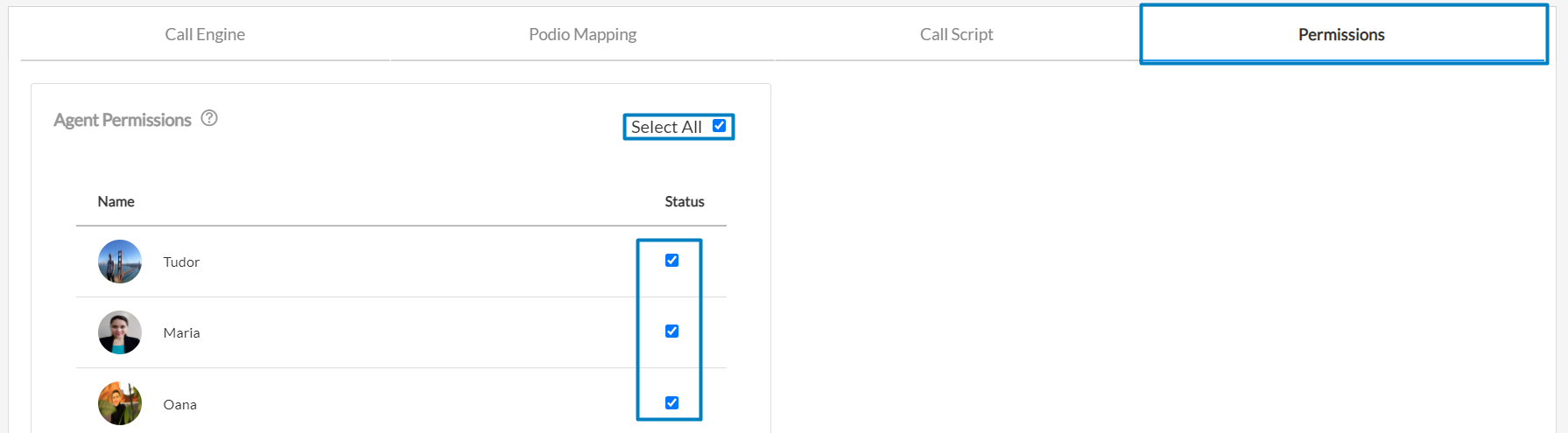 The Permissions tab gives you the option to control which of your agents can see this campaign and start a call session. You can either give access to all agents or select certain agents from your workspace.
