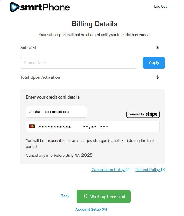 Visit smrtphone.io and click Start Trial. If referred by an affiliate, use their unique link for applicable discounts
