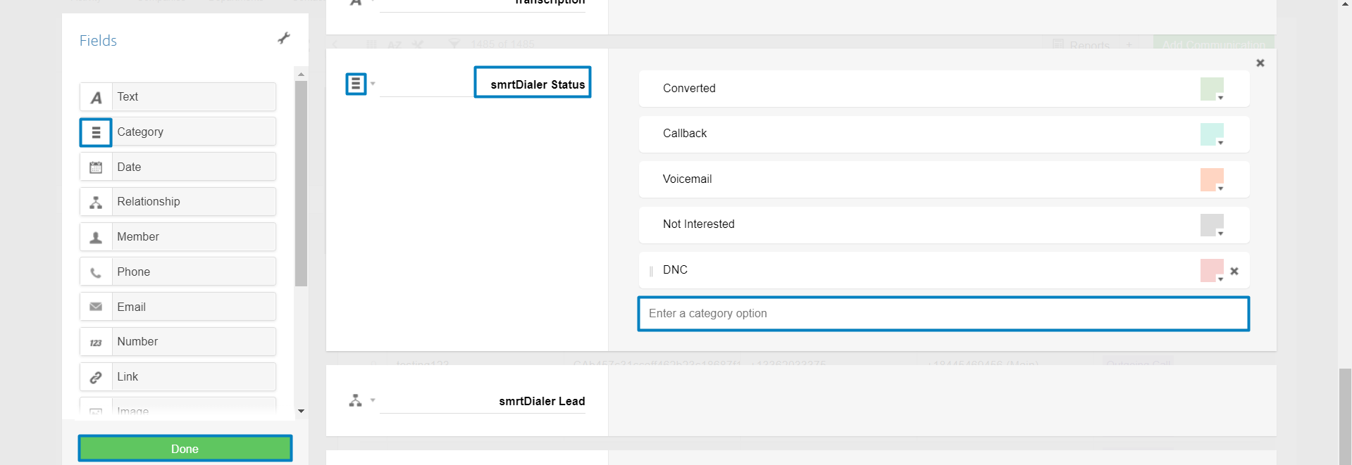 This is a Category Field and you can add, remove, and personalize it. Once they are set in Podio, they will appear in smrtDialer, and you can adjust what happens when selected (Call/Skip) in the Call Engine tab.