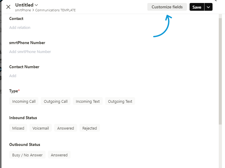 As a Tape User, you can modify your template as well. Head to your CRM, and Customize Fields, to modify your call statuses. Once they are set, will show up as options when ending a call.