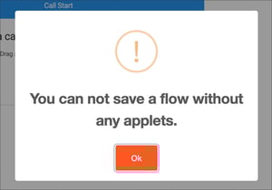 Drag the desired Applet from the right to the dotted-line boxes within the call flow dialogue window beneath where it says When a call begins, what should we do?