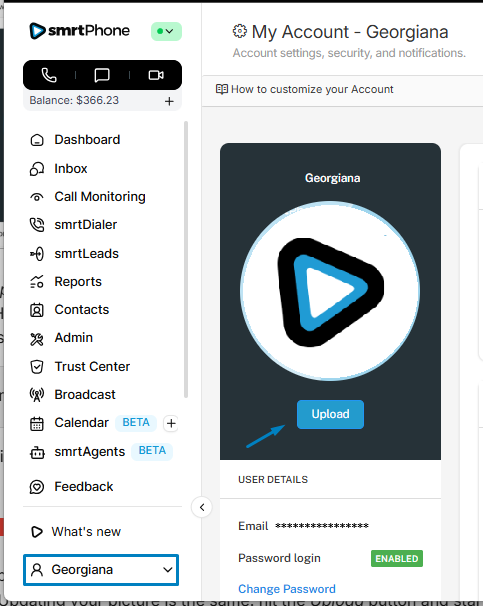 Click on Upload and select a picture from your device to upload to your smrtPhone account. Hit Enter (or Open) and the image is uploaded. A green banner will confirm the successful update.
