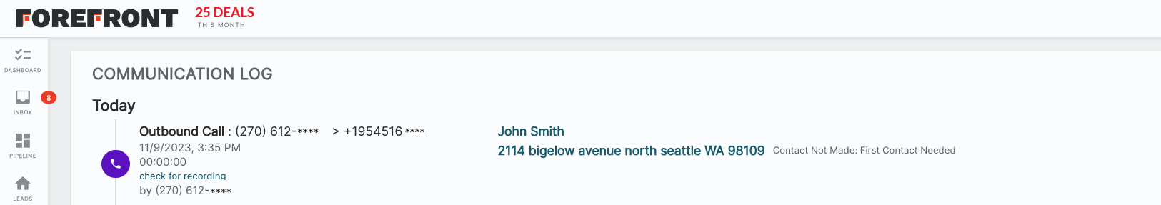 Forefront users can find their logs in three places: Leads, Contacts, and Comms. For example, this is how you can see logs in Comms.