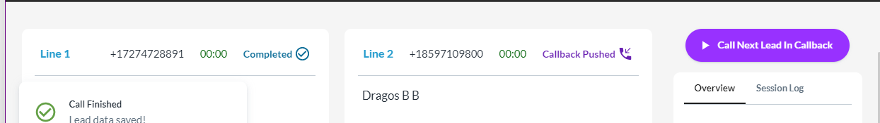 If a second line is connected at the same time as your first, it will be labeled as Callback pushed. When you are ready to un-pause dialing again, that callback number will be the first to be dialed.