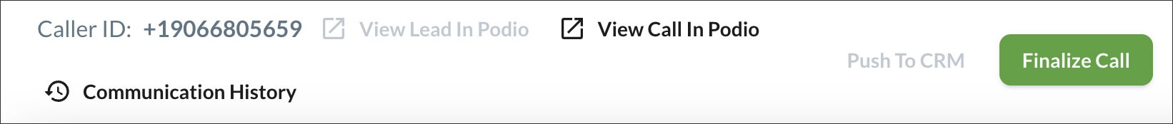 Also, on the bottom of the Lead Window, along with seeing the Caller ID, access to CRM to see call or lead, and Push to CRM button, you can also see Communication History, in case there is any, you can see that in a new tab that pops-up.