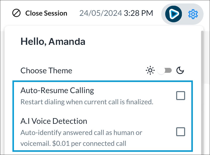 Activating A.I. Voice Detection might cause some delays in calling, but it saves your time in dealing with robots. Also, A.I. Voice Detection costs $0.01 per connected call. If the call is not answered, you will not be charged.