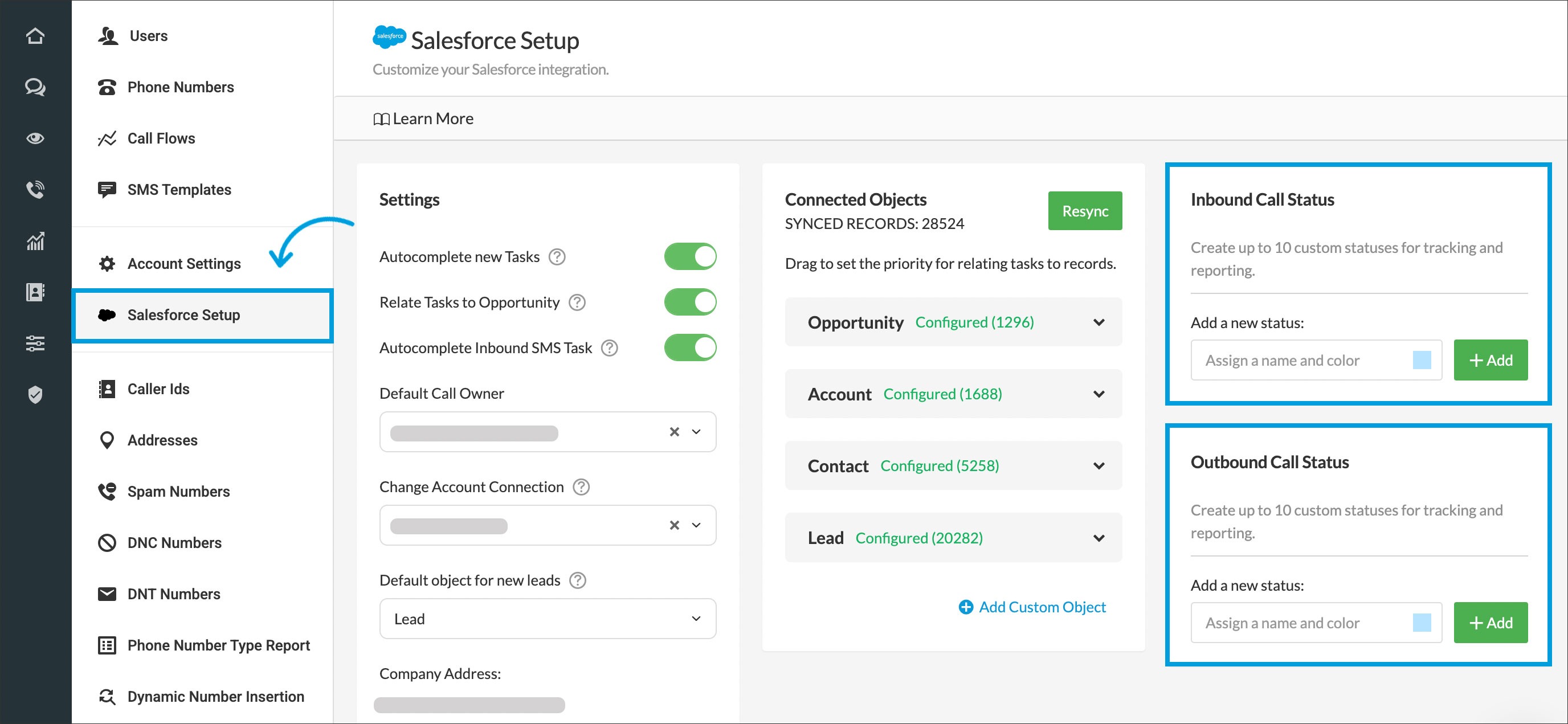 You can now see all of the call details within your Salesforce setup. In the Leads tab, a record will automatically be created for any phone number that is not in your Contacts or Opportunities. It will be saved with an Unknown Name, which can be changed from Lead Information.