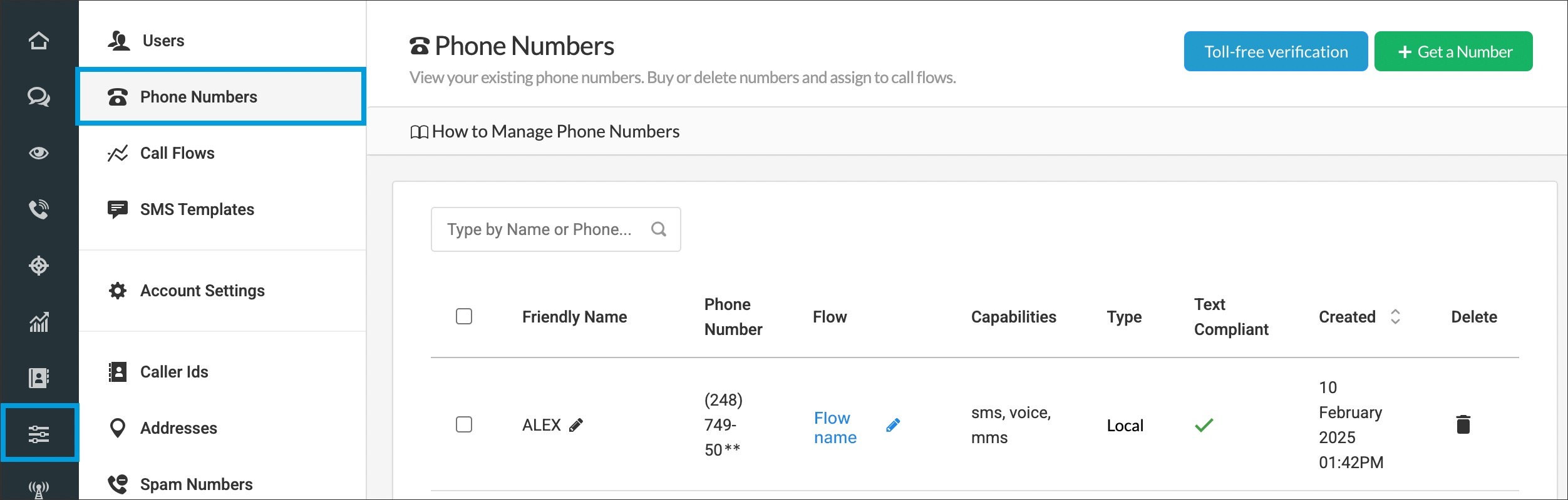 • Manage Call Flows - Inbound communication is impossible without a Call Flow so we've added a button to quickly manage your Call Flows from the Phone Numbers page