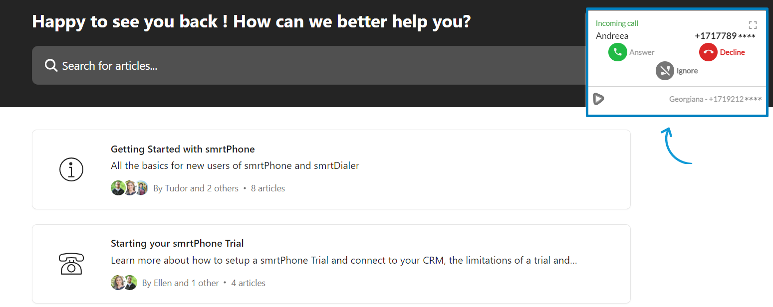 One of the best things about the smrtPhone Chrome Extension is the Call Announcement Banner for incoming calls. This feature allows you to answer a call from any browser tab, without having to open the smrtPhone web app.