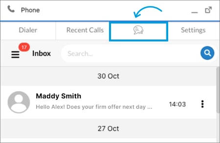 Additionally, you can send a text by clicking the Inbox button and choosing to reply to an existing conversation.