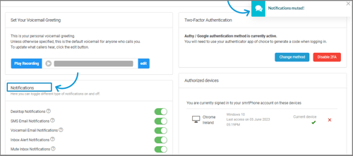 Within your smrtPhone dashboard, you can see real-time notifications of incoming text messages and voicemails to your Inbox. These notifications are accompanied by a soft sound, letting you know that you just received a message.