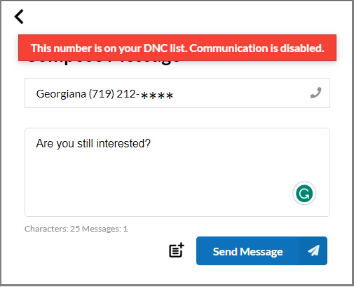 If a contact is listed in your DNC List, texting is disabled to that number.