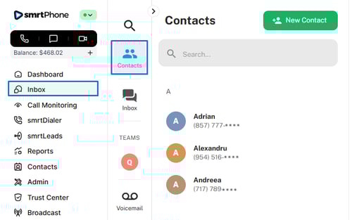 You can also add a contact from your dashboard accessing Contacts Page on Web App in Inbox.