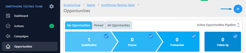 InvestorFuse Users add new leads to their CRM by going to Opportunities from the Dashboard and clicking on the blue โ dot to Create New Opportunity. For more information regarding this matter, please contact InvestorFuse.