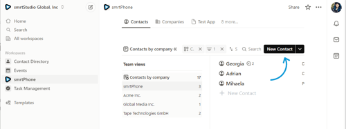 When adding a Contact in smrtPhone, you must select the appropriate Workspace and Contacts App that is connected to your smrtPhone.