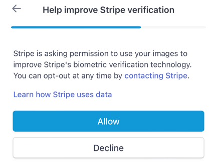 If you don't want Stripe to use your biometric information for their training purposes, you will have the option to revoke consent after you submit your pictures.
