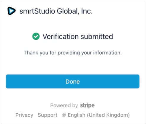 Once you click the start button, you'll notice that identity verification is done in collaboration with Stripe. We leverage Stripe's verification service to verify your identity through the information and any images that you provide. smrtPhone does not store any of your identity information and can only access it if necessary via Stripe.