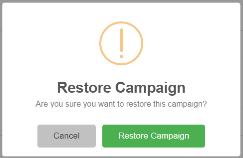 When you are in this tab, you can also definitely delete a campaign. On the right side, you have the Actions buttons. You can restore or delete it. If you decide to delete the campaigns, hit the trash can icon 🗑️ and confirm your action.
