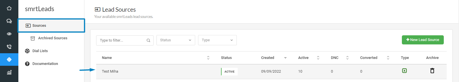 Lead Status - This can be Active, Converted, or registered as DNC.