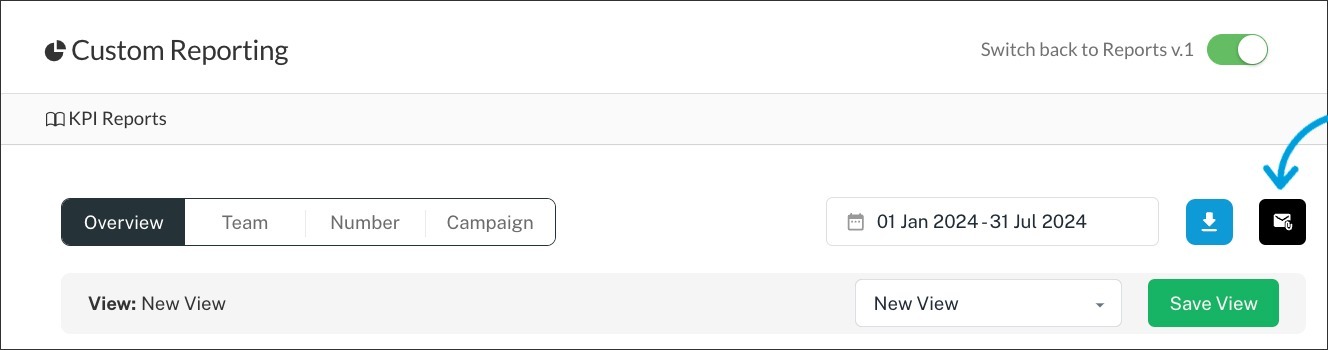 To save any specific view you set, use the green top-right button called Save View. Name the report and make it public (anyone with KPI permissions can view it) or private (only for your User). You can export any report you customize as a PDF in the Reporting section. You can also delete a view if it is no longer used.