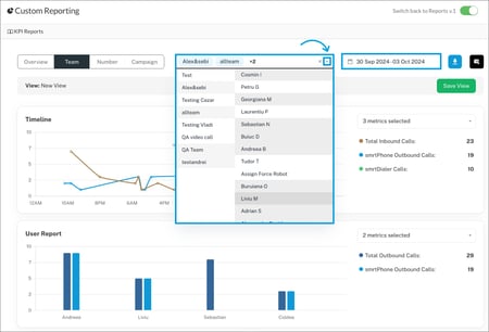 Once you select the users/teams, you will be able to see how they performed in a given timeframe.