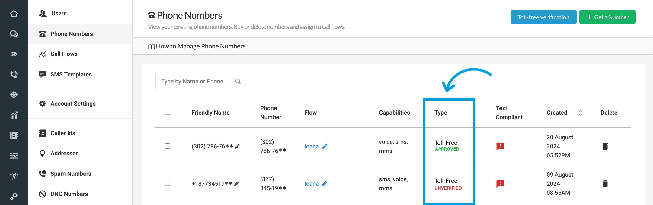 Take care of your Toll-Free numbers by submitting them to be verified via the verification button on your Phone Numbers page. If you run into issues, contact our Support Team via chat.
