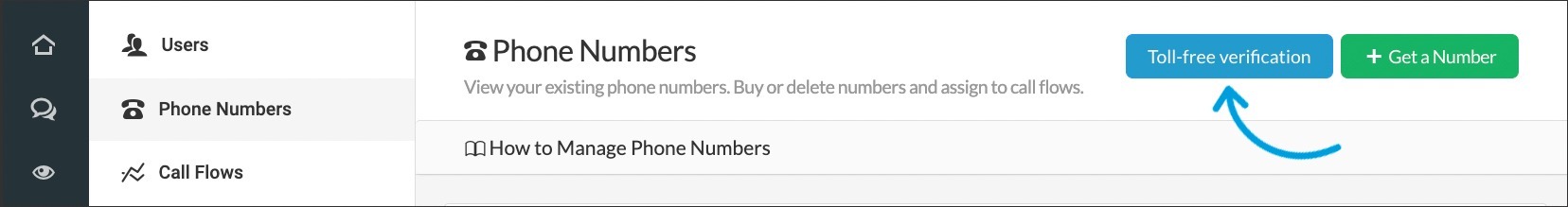 Head to your Phone Numbers page from the Admin panel and select the Toll-Free verification button.