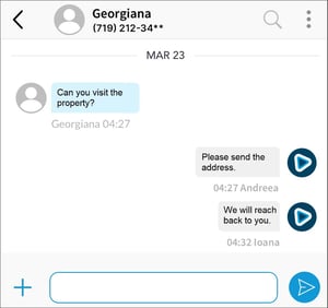 Click on the Inbox icon from the lower menu to view your text messages in the Mobile App.