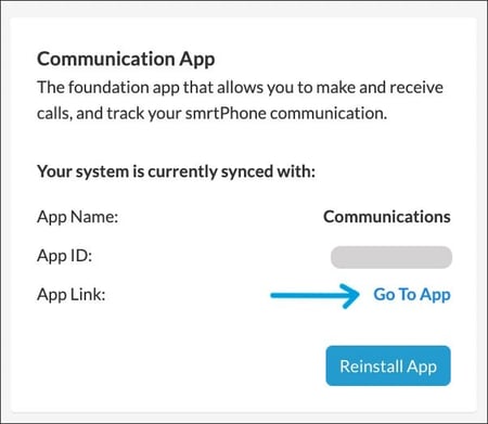 โKeep in mind that reinstalling your Communications App means that the current one will cease to be active (becomes irrelevant for smrtPhone system), and the system will create a new Communications App that will store logs from now on.