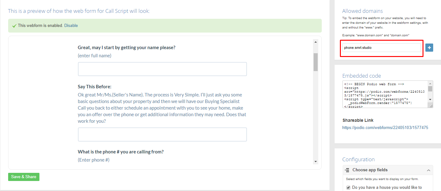 From here, all you need to do is add the following domain in the Allowed Domains section and save the changes: phone.smrt.studio