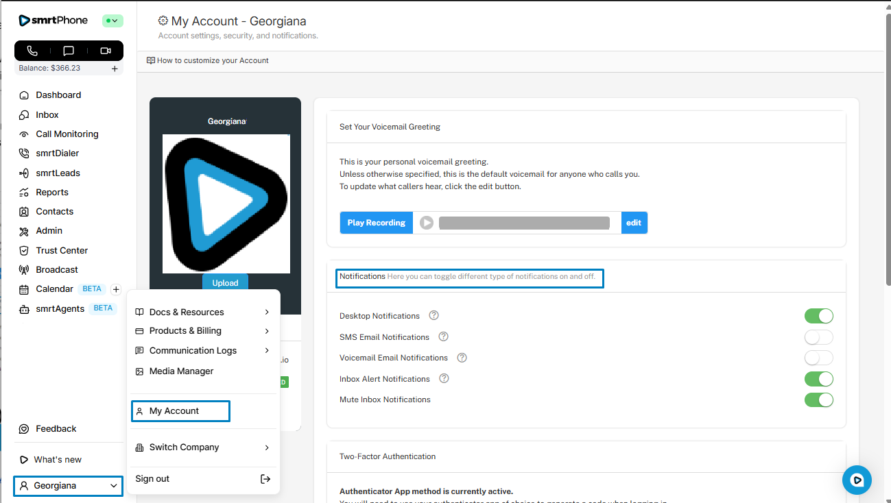 For example, you can define specific triggers such as the type of calls or messages you wish to be notified about or fully disable email notifications.