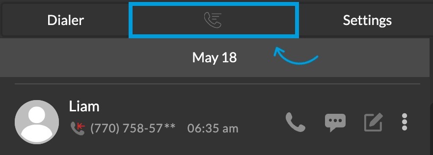 🛑 A visual badge will appear on the blue Dialer button indicating how many missed calls you have