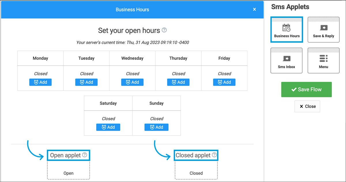 Setting Business Hours (Business Hours Applet) - SMS Flow