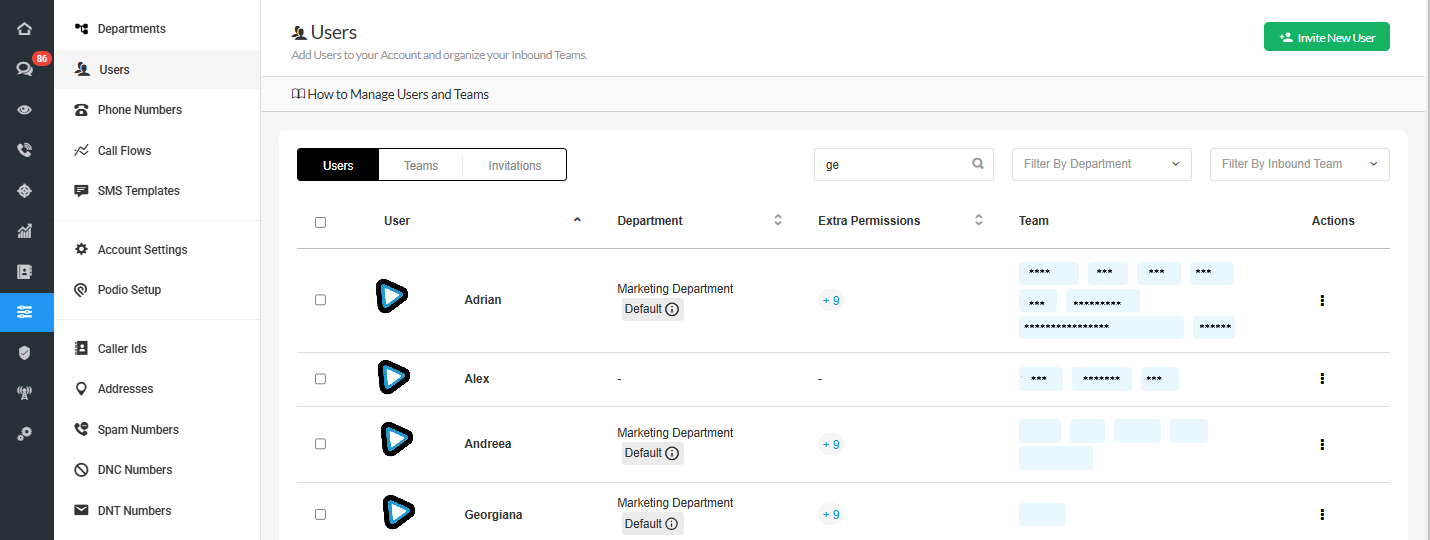 To set up a Geo Caller ID for your User, head over to Admin > Users and press the settings gear icon⚙️ located near the User's name.