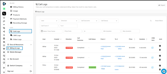 Incoming Call / Outgoing Call / Call Completed - See the event in Call Logs