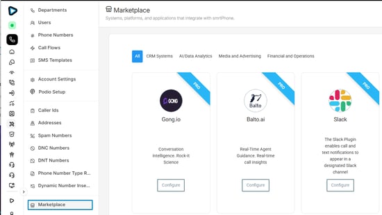 Access the Slack plugin from smrtPhone Dashboard > Admin > Marketplace.